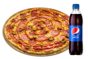 Rinkis iš mūsų siūlomų picų ir atsigavink Pepsi, Mirinda ar 7Up.